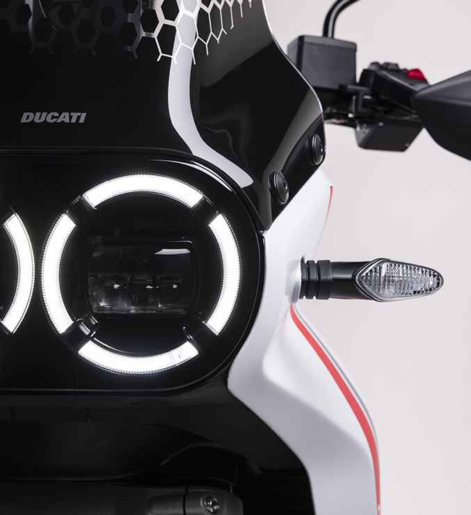 Equipped with a 21-inch front wheel and 18-inch rear wheel, the new DesertX is designed to handle even the most challenging off-road terrain. Dedicated off-road development combined with Ducati’s road expertise result in a responsive and maneuverable bike that is at ease on all types of trails and asphalt.