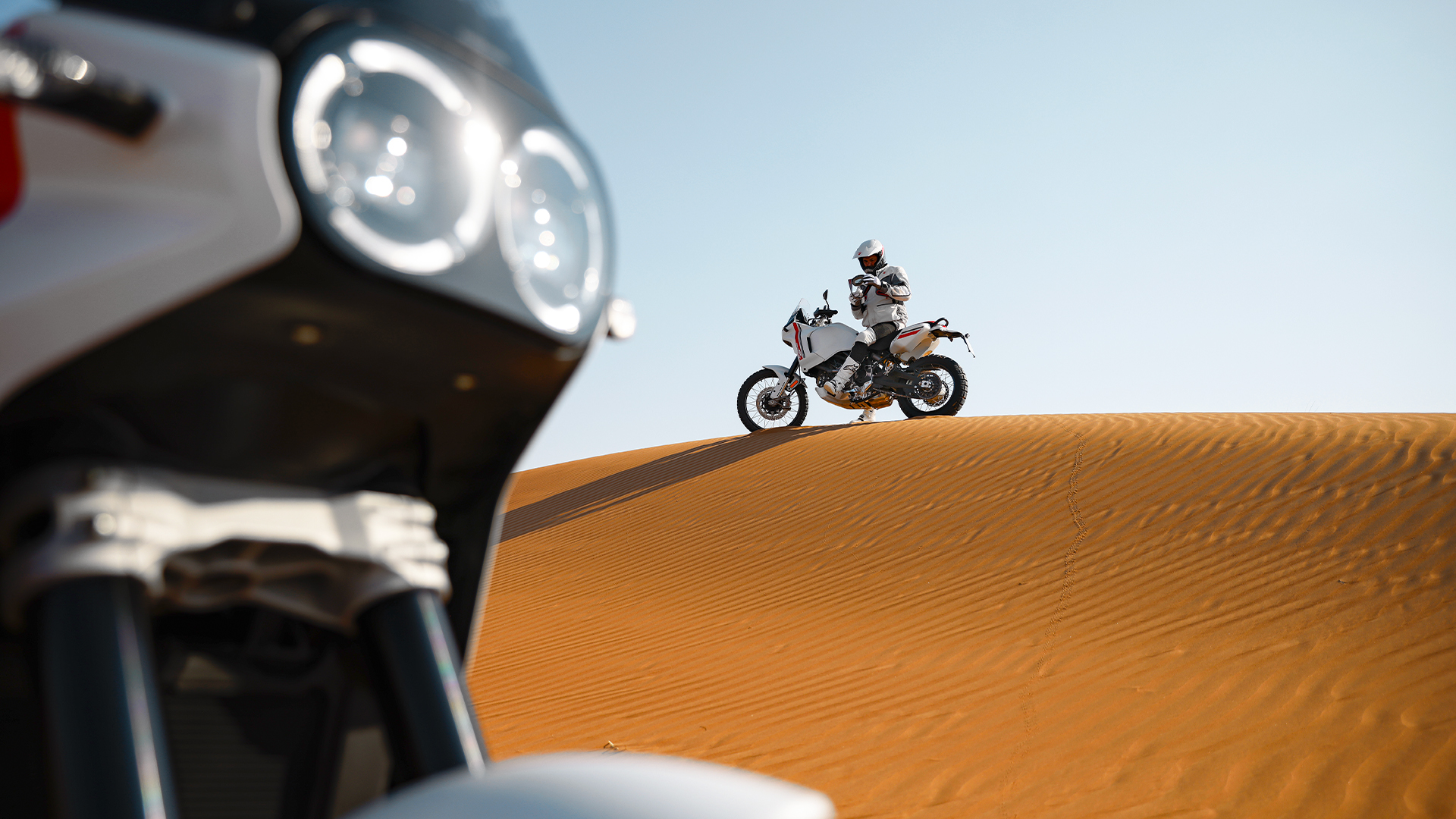 Exploration. Fun. Performance. And a great desire to take and leave towards the horizon. The identity of this bike leaves no room for doubt: just looking at it, it brings you into the atmosphere of Dakar racing.