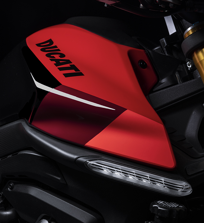 The Monster SP takes the 2022 colors of the official team’s Desmosedici GP, mounts Öhlins suspensions and Termignoni homologated silencer, Brembo Stylema® calipers and Pirelli Diablo Rosso IV tires. True sporty equipment that will make you fall in love with the new Monster SP, available also in depowered version.