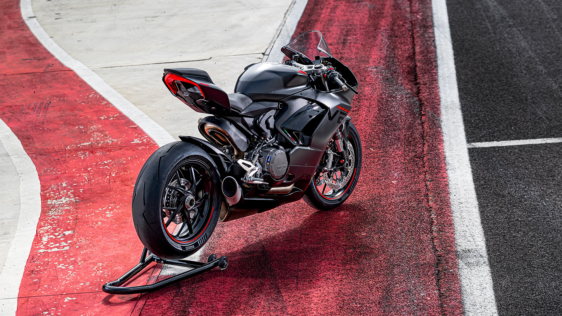 The Panigale twin flaunts a simple design and clear-cut lines, with sophisticated electronics that make it equally high-performance and enjoyable on both road and track. The new Black on Black livery transmits power at first glance, as well as even more audacious style.